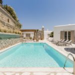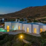 Purched on the crest of a hill overlooking the splendid Agrari Beach, the top end ultra sophisticated Villa ensures privacy on a large plot of land at the end of a private road, away from noise and prying eyes.