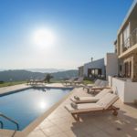 This is a beautiful and cozy house with three bedrooms and two bathrooms. The decoration follows the minimal and elegant style of the Cyclades islands. There is a lovely stone terrace with a pergola adjacent to the south side of the house. The living room, dining area and kitchen are open space with windows all around. The villa, standing high upon the hill, offers breathtaking views.